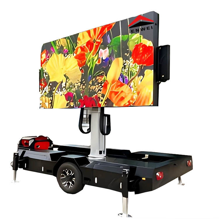 Elektryczny zwiastun reklamowy LED posiada wysoką rozdzielczość i wysoką jasność, umożliwiając wyraźne wyświetlanie obrazu, nawet w bezpośrednim świetle słonecznym.W międzyczasie, przyczepa z wyświetlaczem LED jest wyposażona w hydrauliczny maszt i system obrotowy, który umożliwia regulację wysokości i kąta ekranu, dzięki czemu uzyskuje się bezproblemowy wyświetlacz 360°. Ma silną stabilność i pozostaje stabilny nawet na zewnątrz.